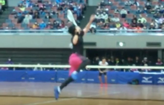 また、ジャンピングスマッシュのようなアグレッシブな動きで正確にボールを捉え、