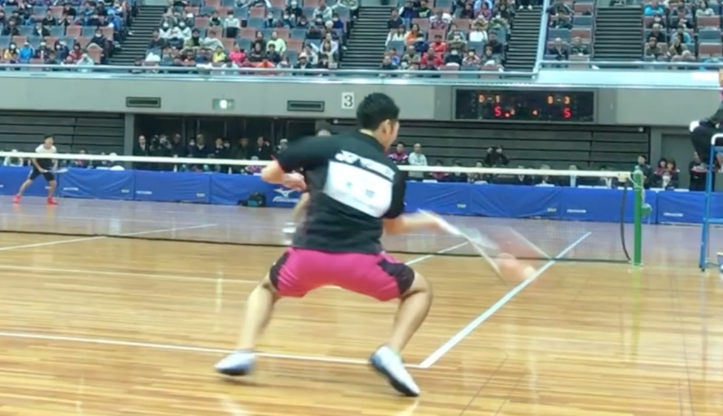 本来の林田選手のフットワークならしっかり右足から左足に踏み込む打ち方になっていたと思います。